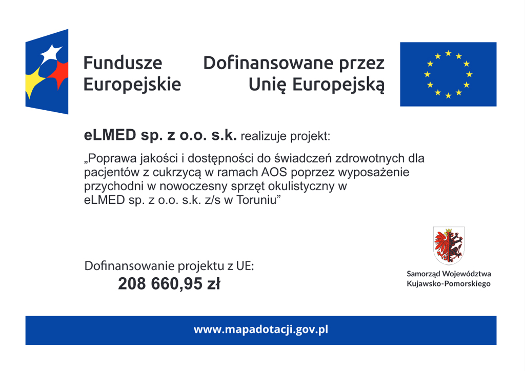 „Poprawa jakości i dostępności do świadczeń zdrowotnych dla pacjentów z cukrzycą w ramach AOS poprzez wyposażenie Przychodni w nowoczesny sprzęt okulistyczny w eLMED spółka z ograniczoną odpowiedzialnością spółka komandytowa z/s w Toruniu”